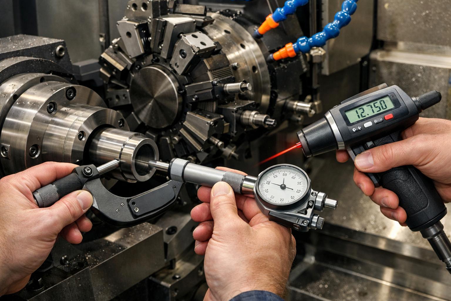 ЧПУ-станки с револьверными головками, управляемые оси и поддержка программ CAM позволяют стабильно получать посадки H7/h6 и требуемую шероховатость Ra 1.6–3.2. Контроль геометрии делается микрометрами, нутромерами и ИК-калибрами.